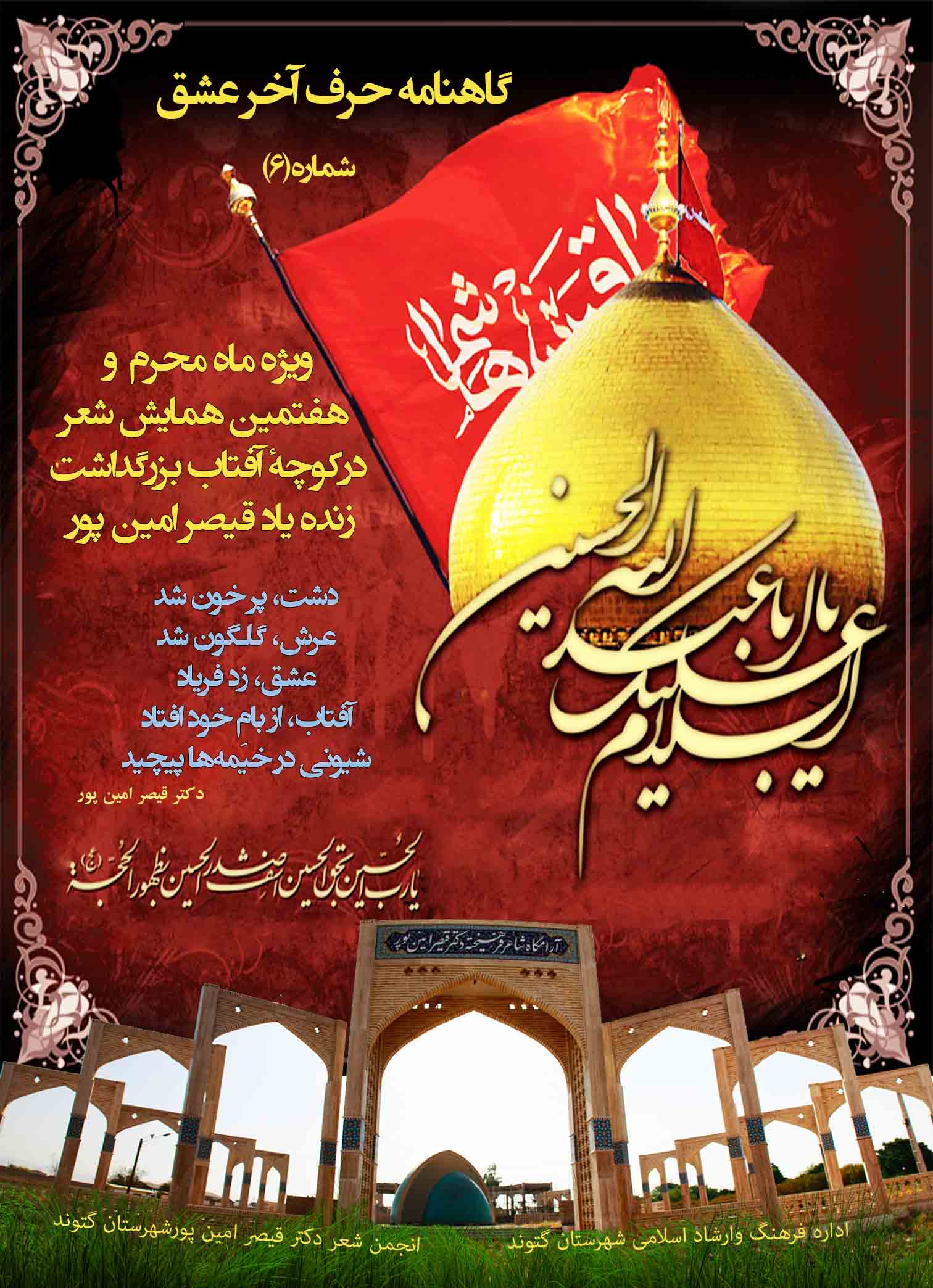 سجاد خسروی مسئول انجمن شعر شهرستان گتوند ضمن تسلیت به مناسبت ماه محرم و فرارسیدن هفتمین سالگرد درگذشت شاعر فرزانه ی انقلاب ودفاع مقدس و ادیب و فارسی پژوه ارجمند خوزستانی در حوزه ی شعر و ادب معاصر کشور ، زنده یاد دکتر قیصر امین پور بیان داشتند: گاهنامه حرف آخر عشق توسط انجمن شعر شهرستان گتوند به مناسبت ماه محرم وسالگرد دکتر قیصر امین پور تهیه وتوزیع گردید است که در این گاهنامه مطالبی به همین مناسبت منتشره گردیده است